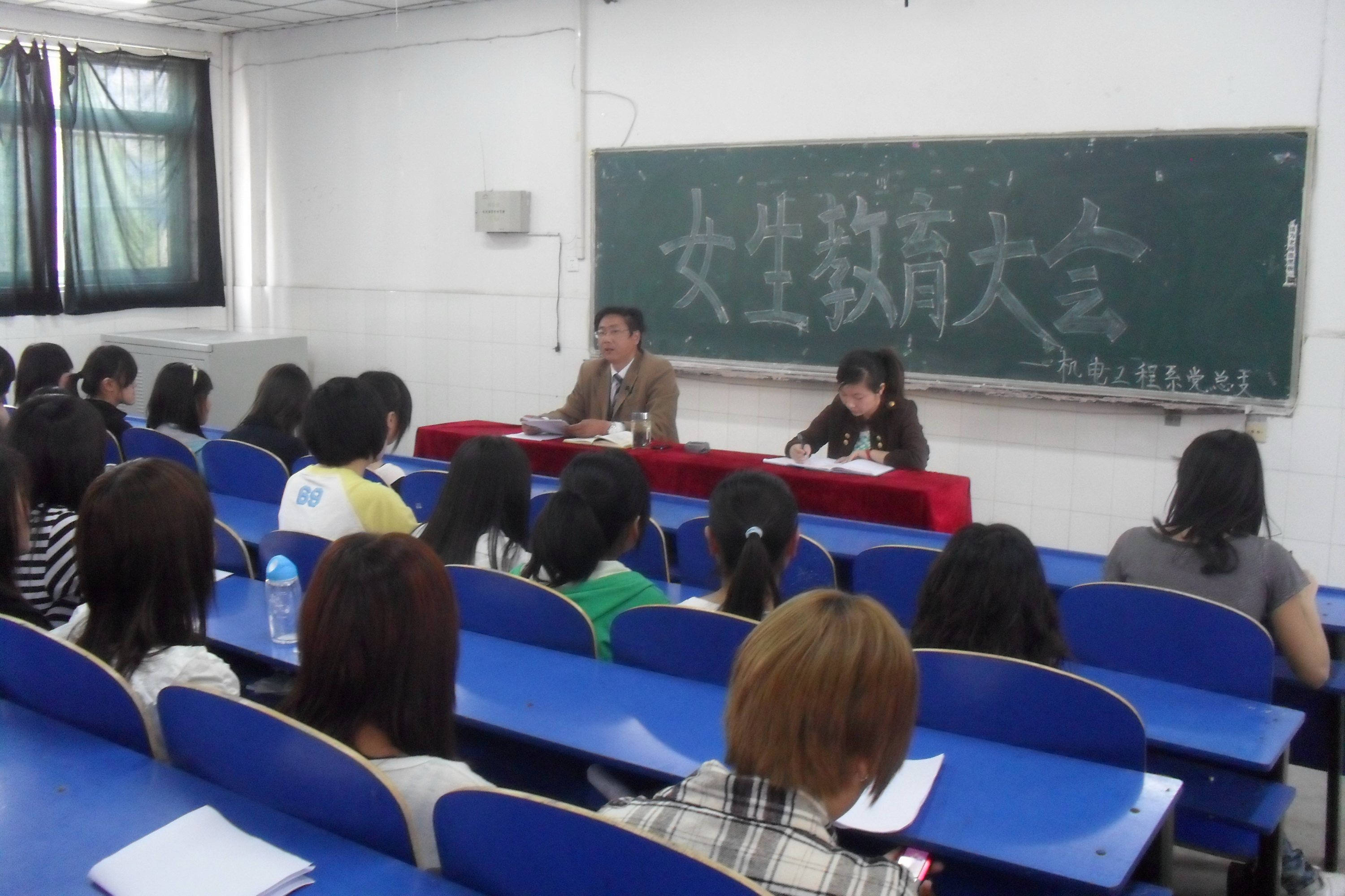为提高全系女学生的综合素质,激励同学们人人争做自尊、自信、自立的优秀女大学生,机电工程系于4月20号下午四点在1#111教室组织召开了女生教育大会,系副书记叶启衡主持会议,全系女生参加了本次大会。