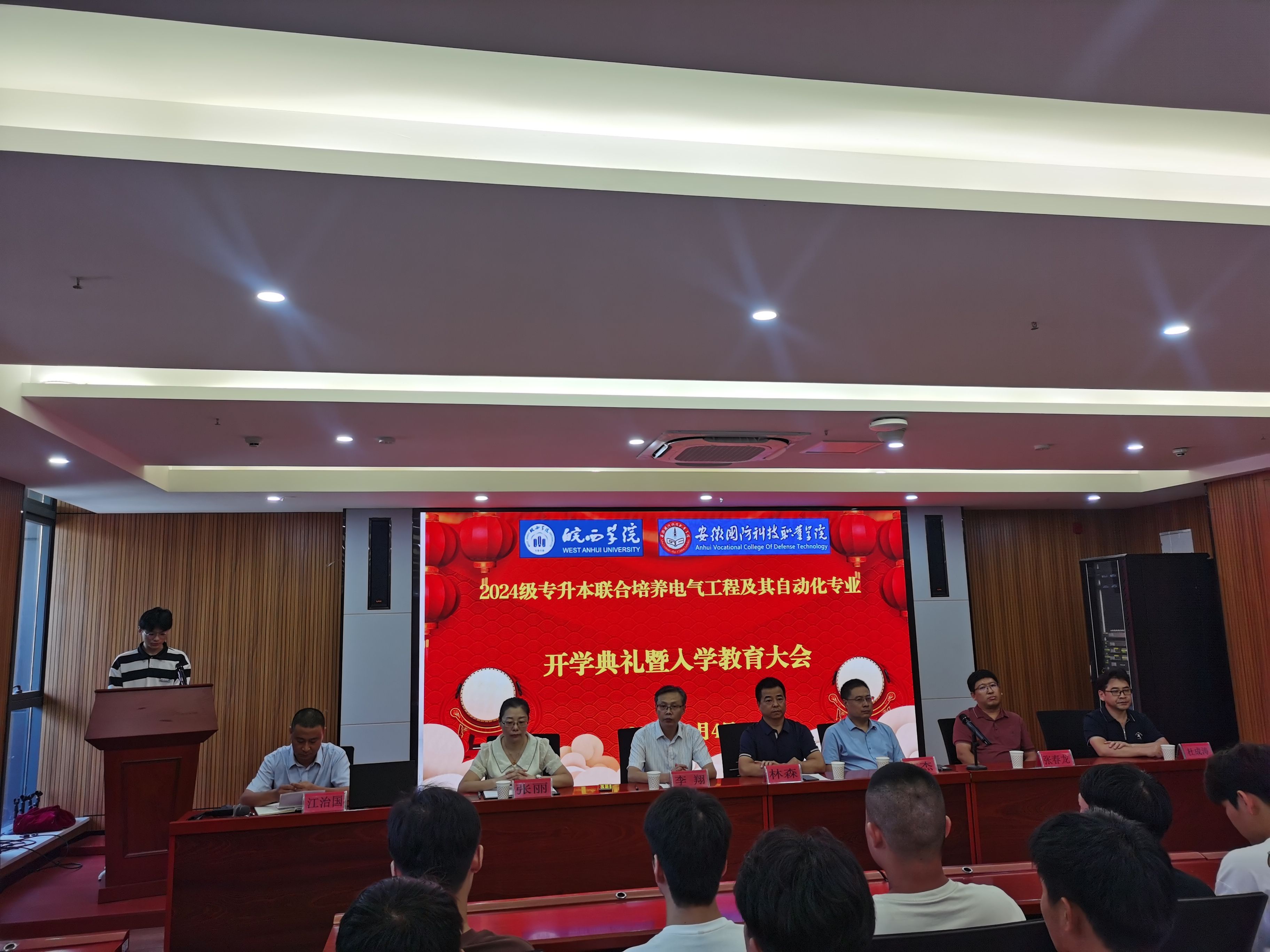 本网讯(电气技术学院 江治国)9月4日下午,电气技术学院组织召开了2024级专升本联合培养电气工程及其自动化专业开学典礼暨入学教育大会。皖西学院电气与光电工程学院党委书记林森、院长方杰、副院长张春龙、电气工程及其自动化专业带头人杜成涛,beat365在线唯一官网电气技术学院院长李翔、党总支副书记张丽、电气自动化技术专业负责人任汉鼎、部分教师以及2024级本科班全体同学参加了会议,会议由电气技术学院副院长江治国主持。