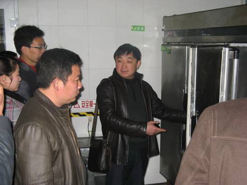 童立新(中)一行参观我院食堂设施