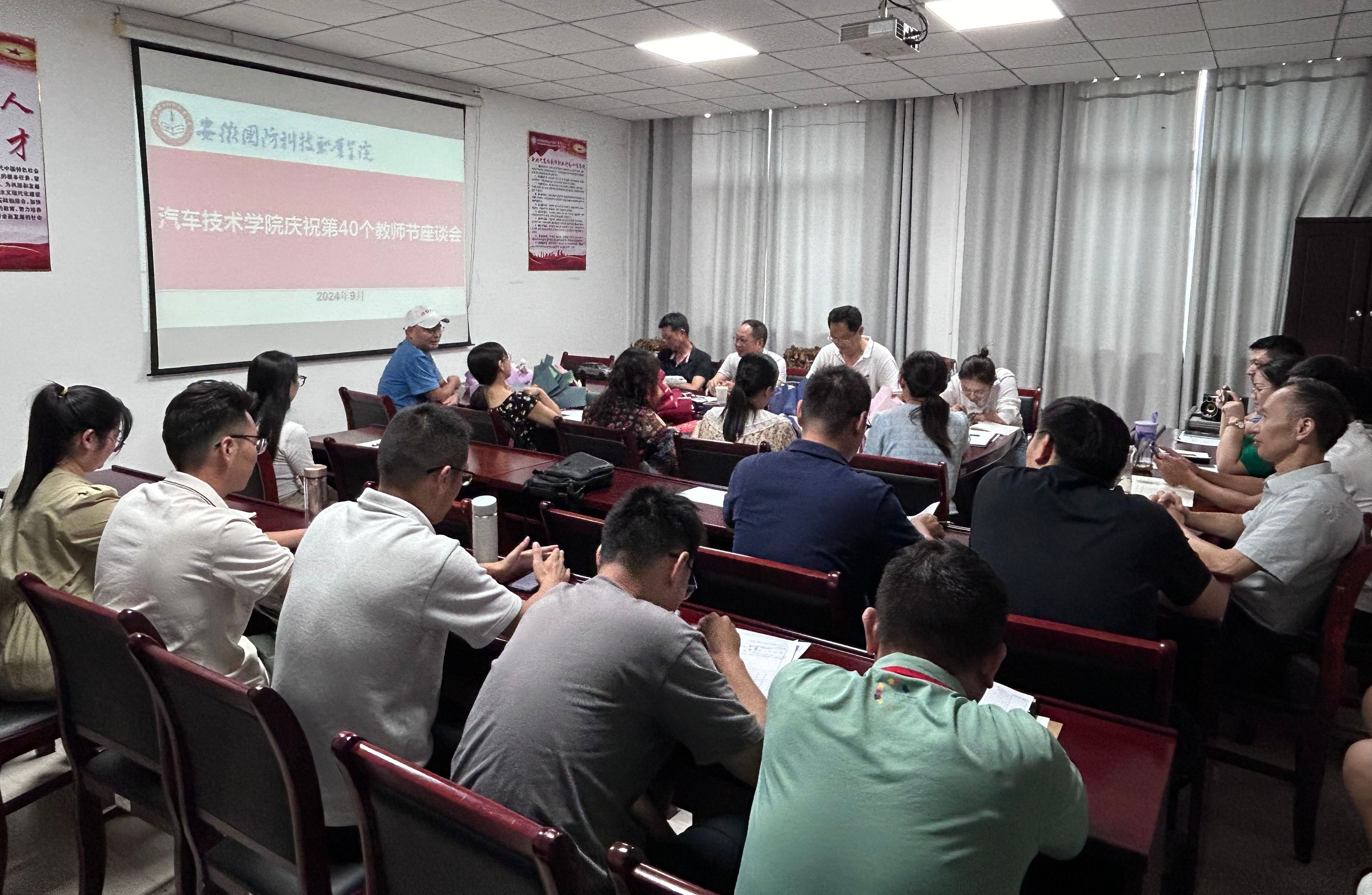 本网讯(汽车技术学院 任培培)为全面贯彻党的教育方针,大力营造尊师重教的良好氛围,增强教师的职业荣誉感和归属感,传承良好师德师风,展现学院师资队伍建设成果,近日,汽车技术学院组织开展庆祝第40个教师节系列活动,以丰富多彩、凝聚向上的活动形式诠释了学院全体教师对教育家精神的理解、弘扬和践行。校党委副书记冯伦久到会指导。