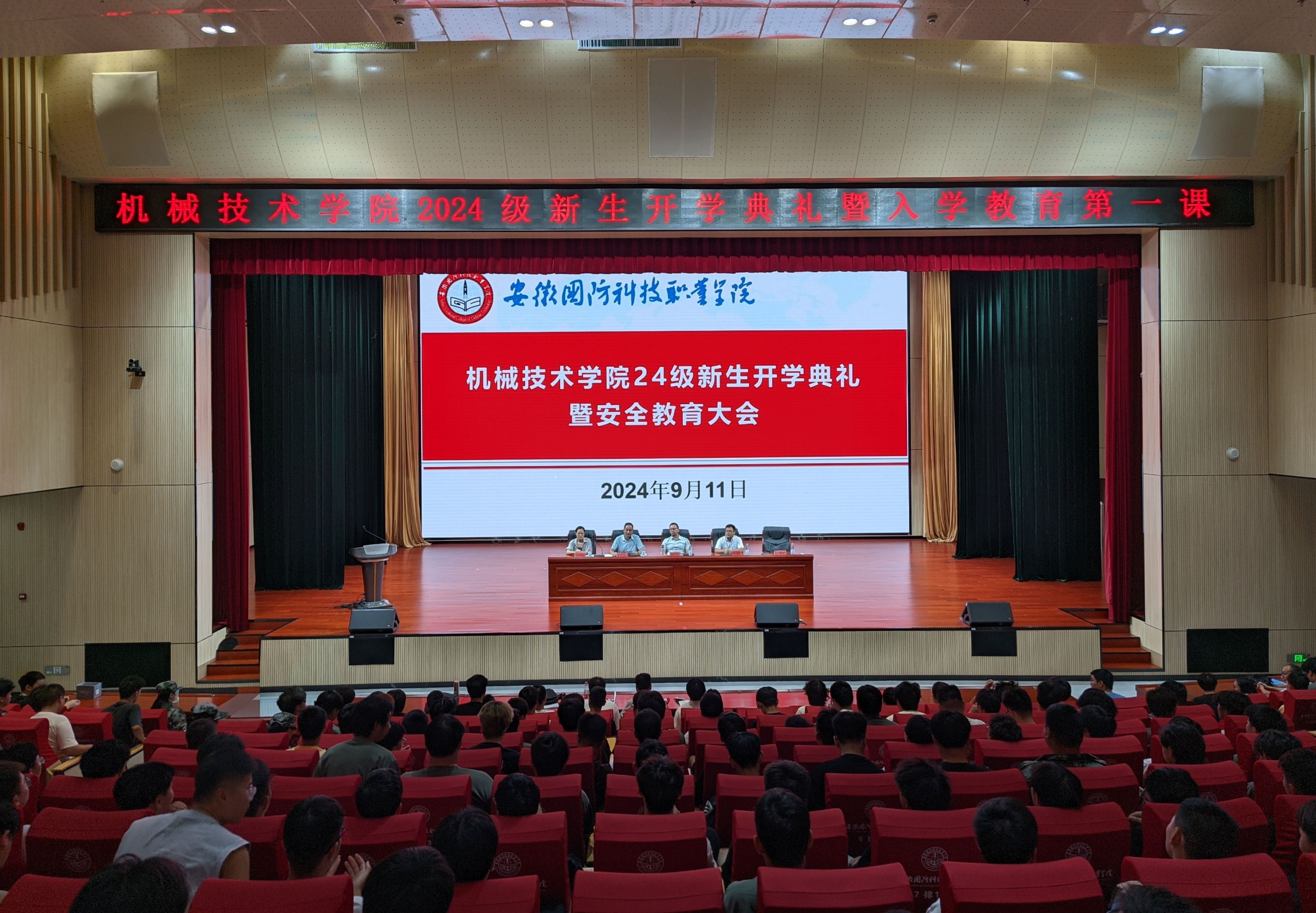 本网讯(机械技术学院 柏媛媛)9月11日下午,机械技术学院2024级新生开学典礼暨入学教育在产教融合中心多功能报告厅隆重举行,学院党总支副书记张红军、学院副院长(主持工作)熊良平、产业教授安徽博微长安电子有限公司精密加工分厂厂长周运海、团总支书记王腾州,各专业带头人、专兼职辅导员和教师代表,近700余名师生相聚于此,共迎新篇章。