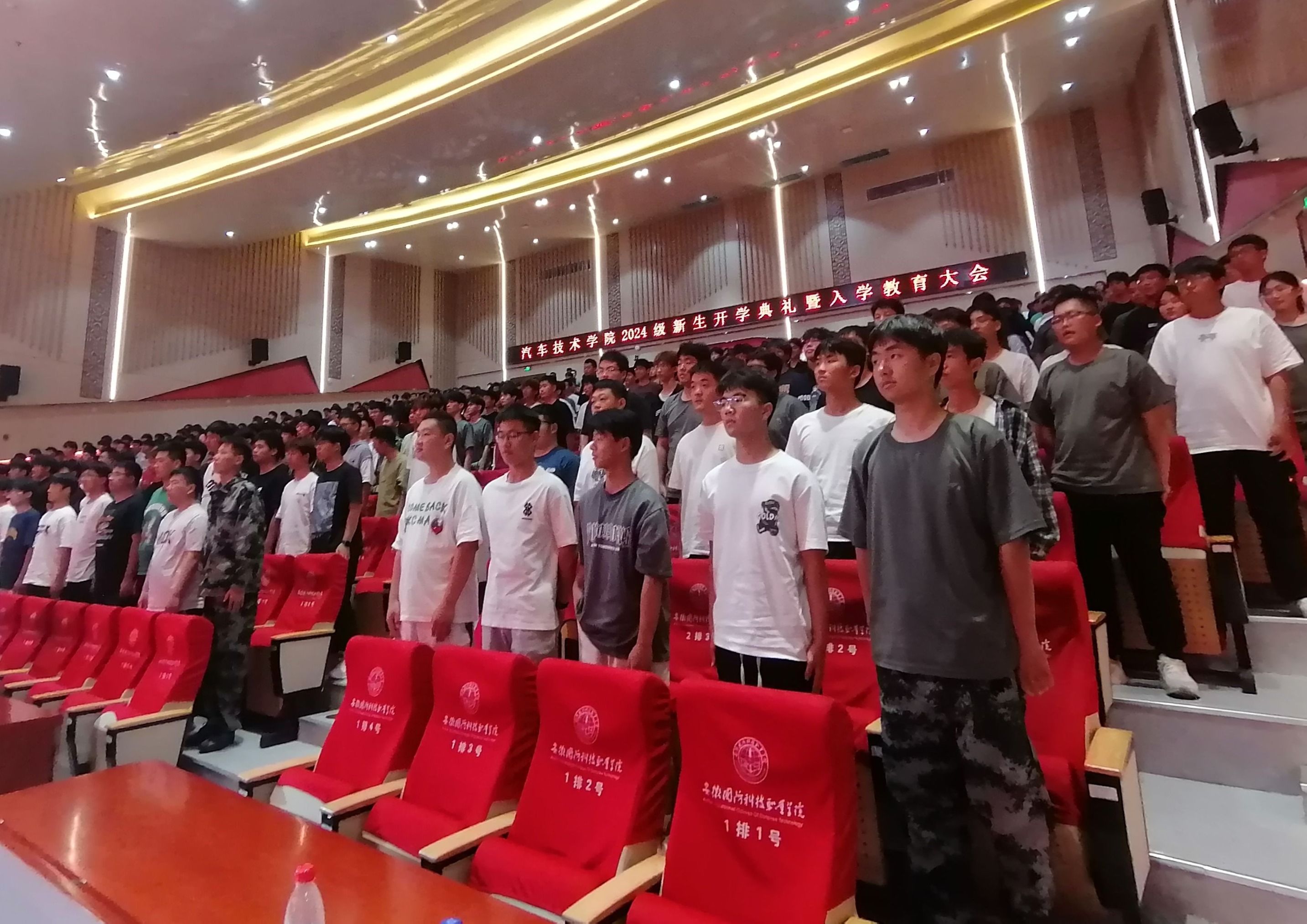 本网讯(汽车技术学院 徐婷婷)云天收夏色,木叶动秋声。9月12日晚,汽车技术学院在学校多媒体报告厅举行2024级新生开学典礼暨入学教育大会。汽车技术学院党政班子主要成员、2024级辅导员及580余名新生参加,会议由汽车技术学院党总支副书记陈梦雅主持。