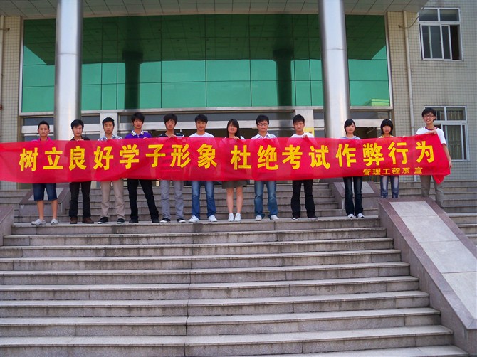 为加强学风建设,强化学生诚信理念,管理工程系于6月12日上午在2号教学楼前举行了诚信考试签名活动。