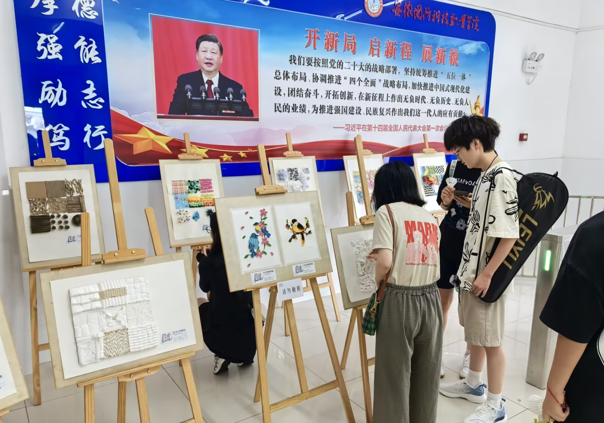 本次展览集中展示了计算机应用技术专业23级、22级学生在张悦老师《构成基础》、谈龙健老师《图形创意》课程教学中的学习成果。展出作品各具特色,艺术表现手法多样、主题呈现多元,平面艺术画、立体纸雕、粘土创作等作品在画板上呈现,件件精美、栩栩如生,吸引了诸多师生驻足观看。
