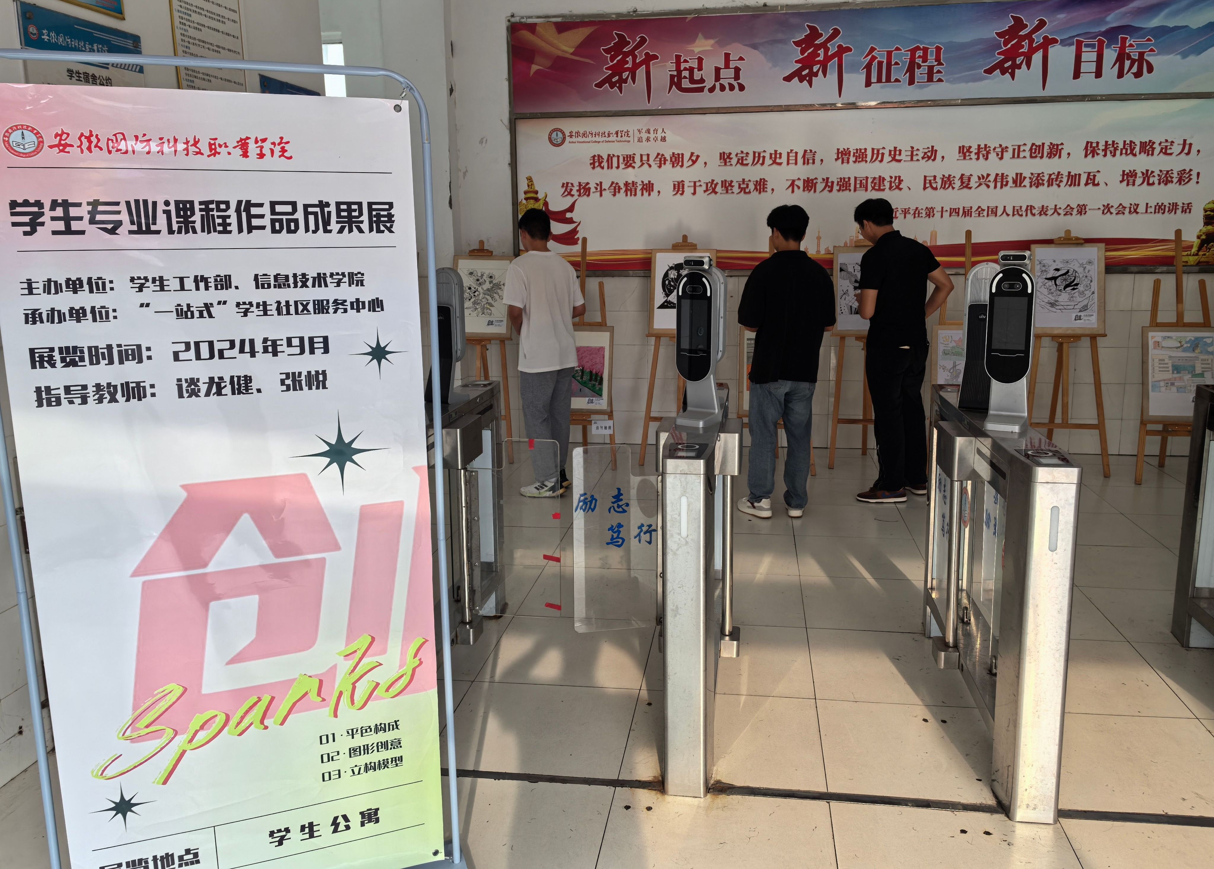 本网讯(学生处 刘秦珂)为落实立德树人根本任务,探索学生社区宿舍文化铸魂育人功能,强化美学教育与技术教育的深度融合,9月25日,由学生工作部和信息技术学院主办、 “一站式”学生社区服务中心承办的计算机应用技术学生专业课程作品成果展在学生公寓6号楼、7号楼、10号楼顺利展出。