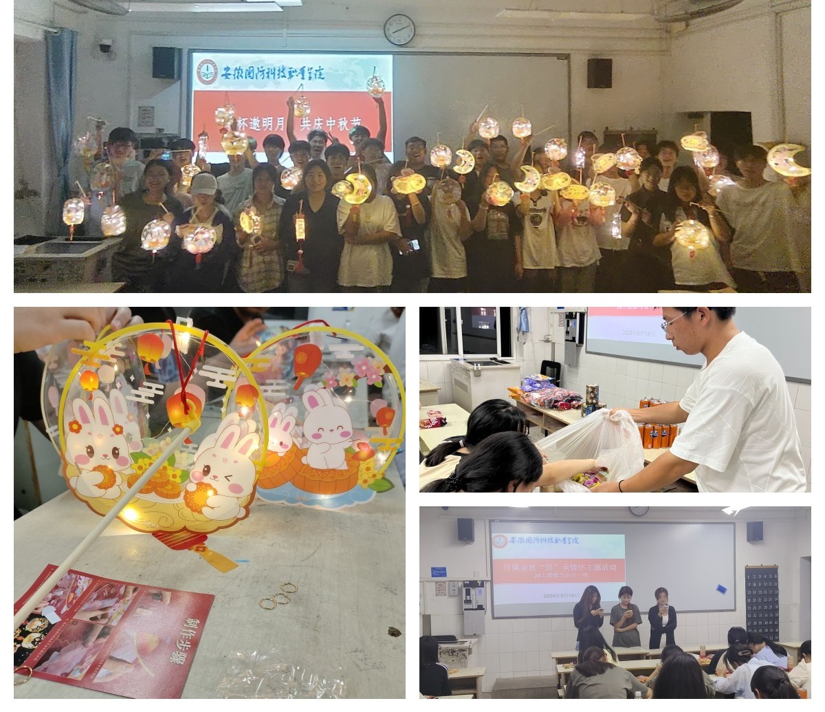 2024年中秋节正值新生军训,为实现教育形式多样化,丰富学生校园生活,提升班级凝聚力,9月15日至16日晚,学院各新生班级通过开展花灯DIY、猜灯谜和品月饼等活动庆祝中秋佳节,各会场气氛热烈,参与活动的学生们心情舒畅、笑容满面。