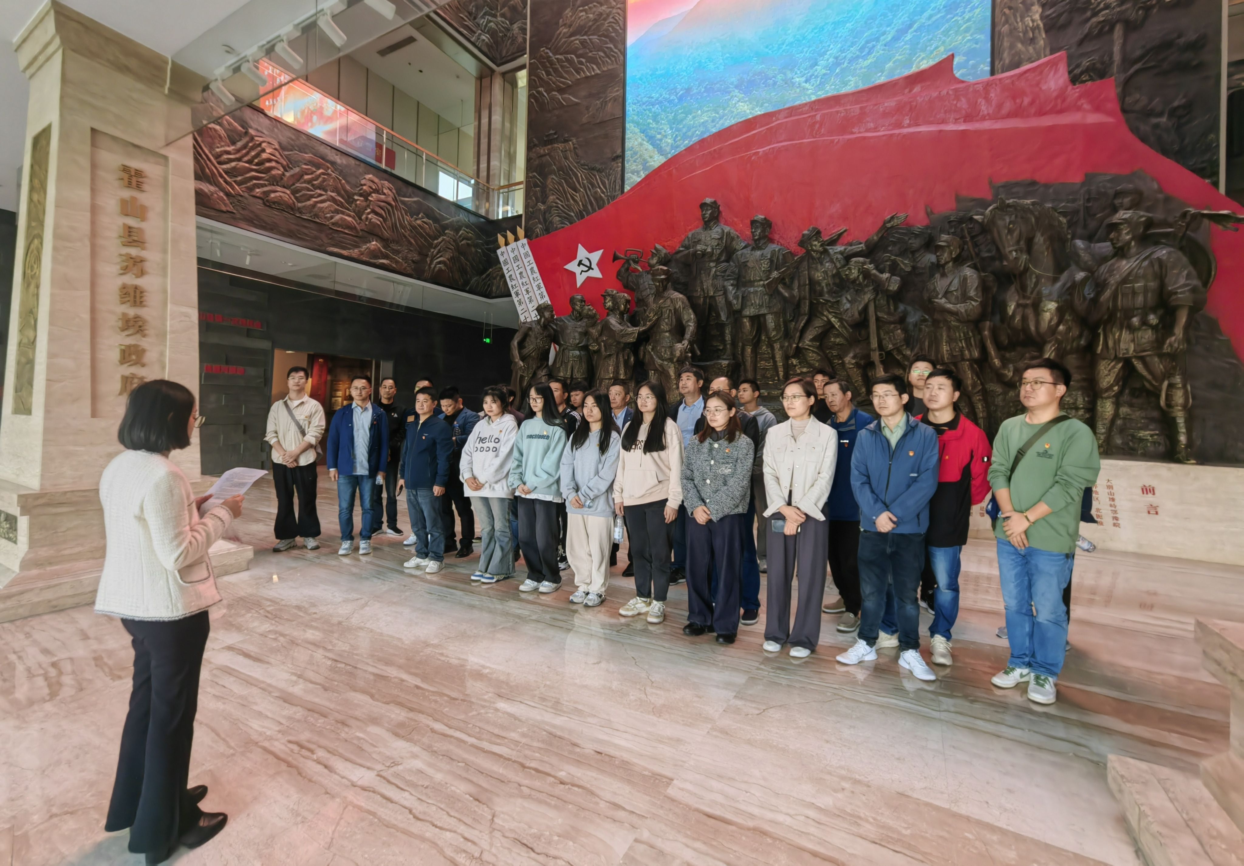 在霍山革命纪念馆,重温皖西地区革命先驱们的英雄事迹,喻家六兄妹全家献身于革命事业,他们事迹感人肺腑。正是革命前辈们的抛头颅洒热血,才有我们今天的幸福生活。在纪念馆参观结束后,智能制造党支部书记龚灯,为师生党员分享了学习皖西革命史的心得体会。