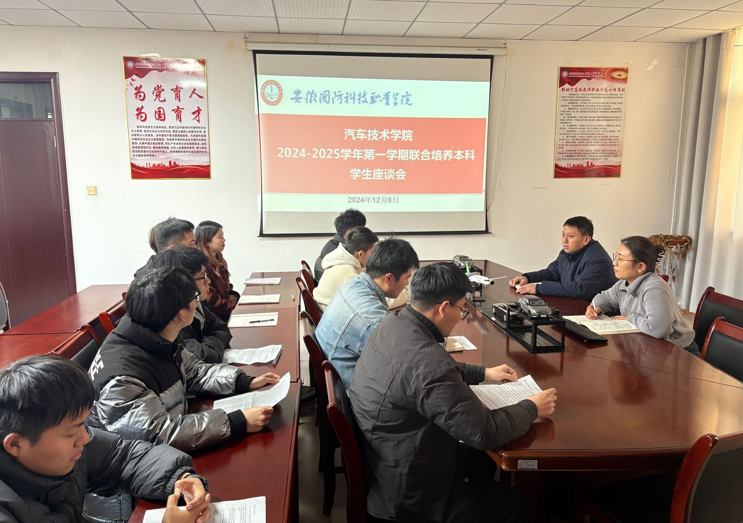 本网讯(汽车技术学院 黄世超)为倾听学院本科学生心声,了解并解决学生在日常学习、生活等方面遇到的困难,搭建学院与学生沟通的交流平台,12月6日,汽车技术学院组织召开2024-2025学年第一学期联合培养本科学生座谈会,学院党总支副书记陈梦雅老师、本科班辅导员黄世超老师参加了座谈会。