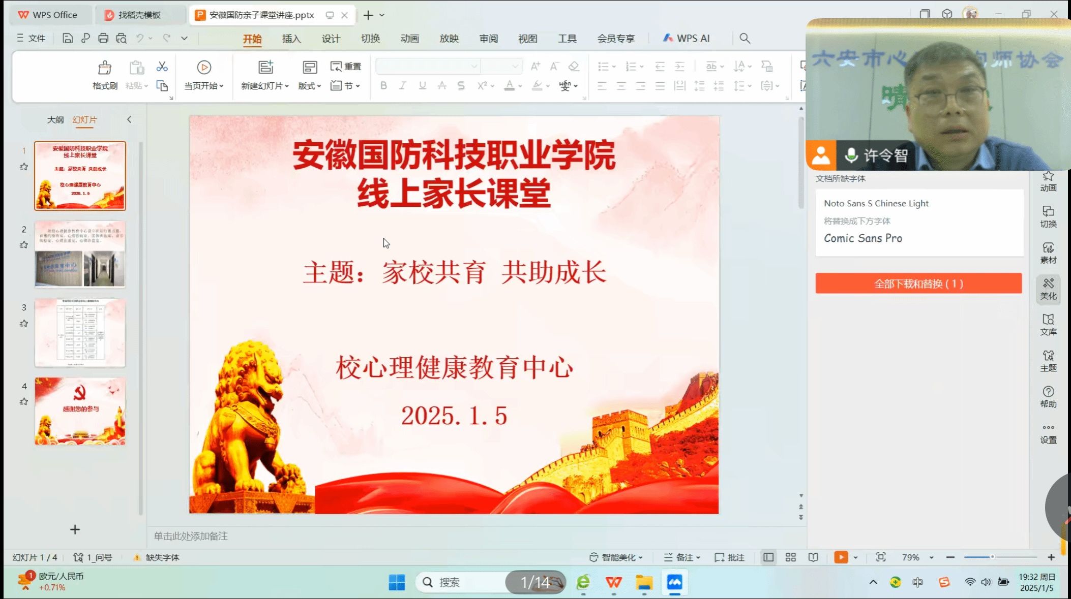 本网讯(学生处 戴柳)为了深入开展家校联动,发挥家庭育人重要作用,提升学生心理健康教育合力,1月5日晚上,学生处心理健康教育中心组织了线上家庭课堂。讲座邀请了六安市心理咨询师协会会长许令智主讲。心理健康教育中心主任戴柳主持了会议,各二级学院家长代表、心理健康专职老师参与了此次讲座。