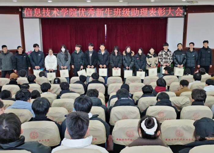 本网讯(信息技术学院 徐祥)1月9日,为了表彰在新生班级助理工作中表现突出的学子,激励他们继续发挥榜样作用,学院在图书馆报告厅隆重举行了年度优秀学生班级助理表彰大会。学院党总支副书记杜洪宇参加会议并讲话,学院辅导员赵德志、彭思远、全体学生班级助理、各在校班级班委参加会议,徐祥主持会议。