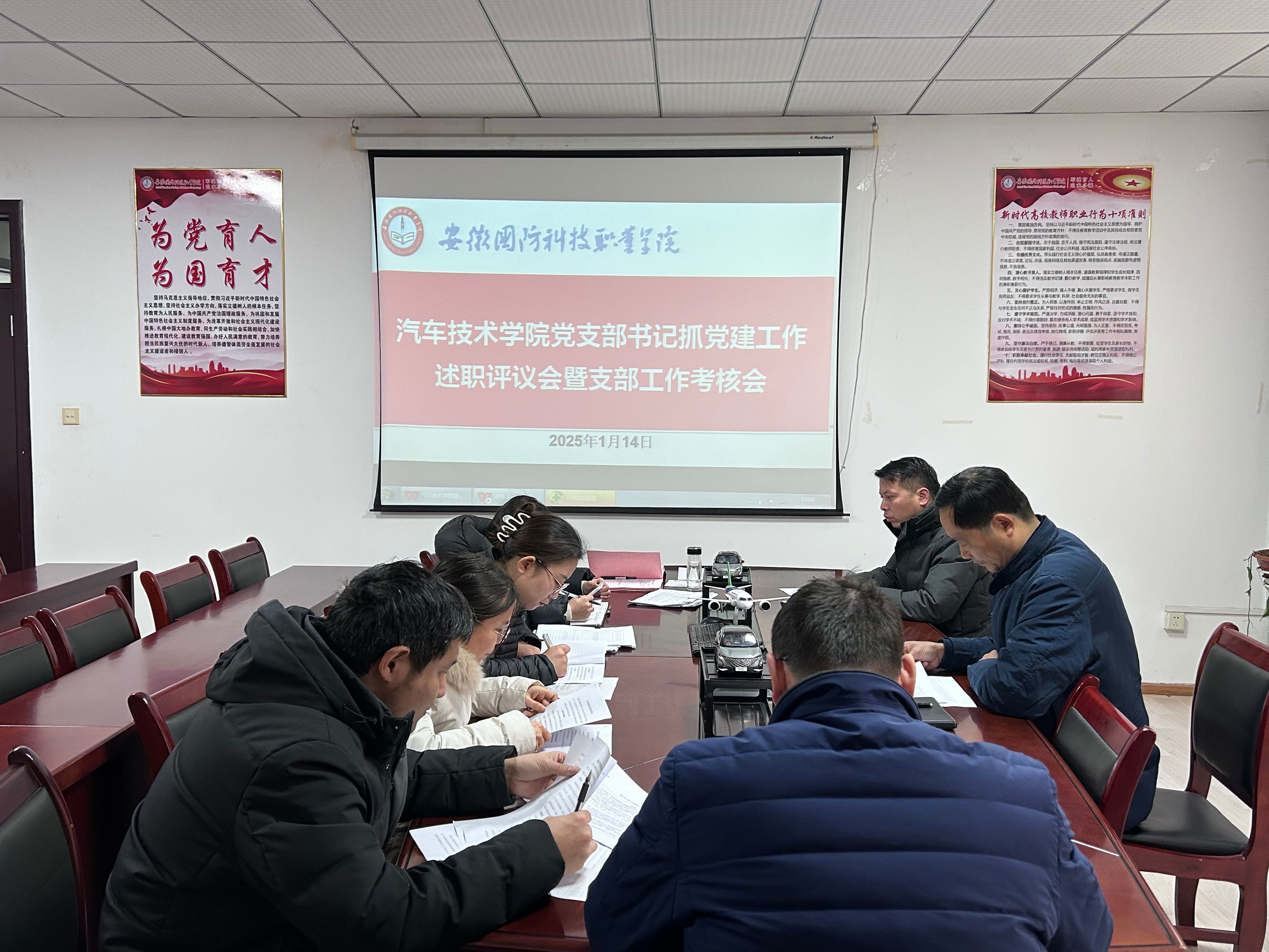 本网讯(汽车技术学院 任培培)为全面提高支部党建工作质量,进一步抓党建促发展,1月14日上午,汽车技术学院召开基层党组织书记抓基层党建工作述职评议暨支部工作考核会,对汽车检测党支部、汽车制造党支部、学生党支部2024年度工作进行考核评议。会议由党总支书记孙良平主持,党总支班子成员、各党支部书记及部分党员代表参加会议。