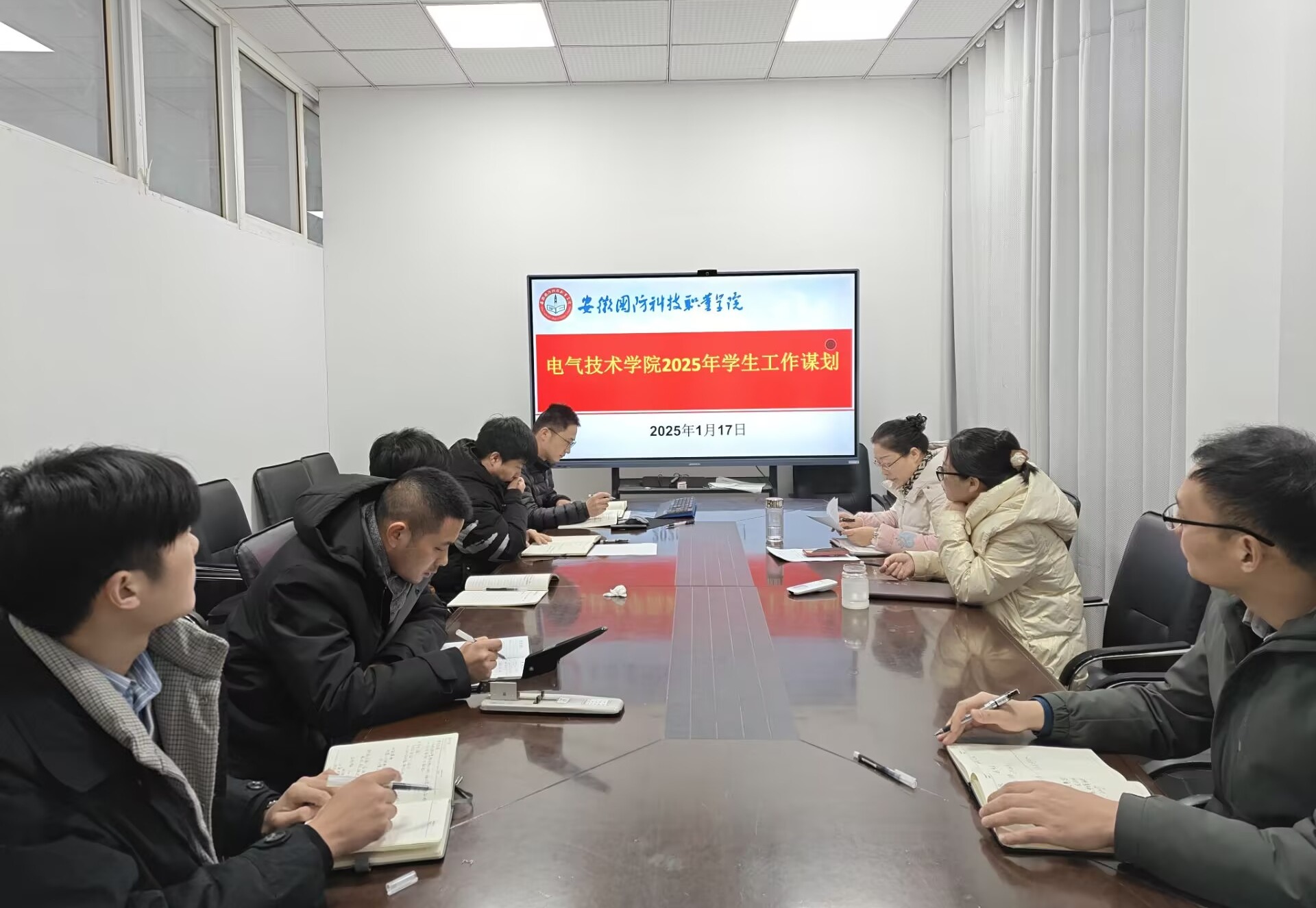 本网讯(电气技术学院 申晓伟)为进一步做好电气技术学院2025年学生工作,1月17日上午,电气技术学院在知行楼102召开学院学生工作务虚会,电气技术学院党总支副书记张丽及全体专职辅导员参加会议。会议围绕学院2024年学生工作完成情况与2025年重点工作任务,参会人员畅所欲言,集思广益,积极理思路、定目标、谋举措。