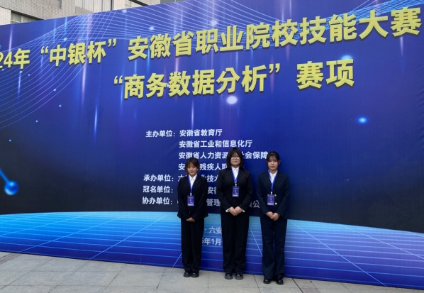 本网讯(经贸管理学院 夏翔)1月13日—14日,2024年“中银杯”安徽省职业院校技能大赛(高职组)商务数据分析赛项在六安职业技术学院举办。本次大赛来自全省33所高校、61支参赛队、183名参赛选手同台竞技。由我院刘玉欢(22电子商务2班)、秦齐(22电子商务1班)、李洪震(22电子商务2班)组成的参赛1队,何梦瑶(23市场营销2班)、张文君(24电子商务2班)、唐红燕(23电子商务2班)同学组成的参赛2队在激烈的竞争中脱颖而出,最终取得全省第5名和第9名的好成绩,分别荣获安徽省一等奖和二等奖。