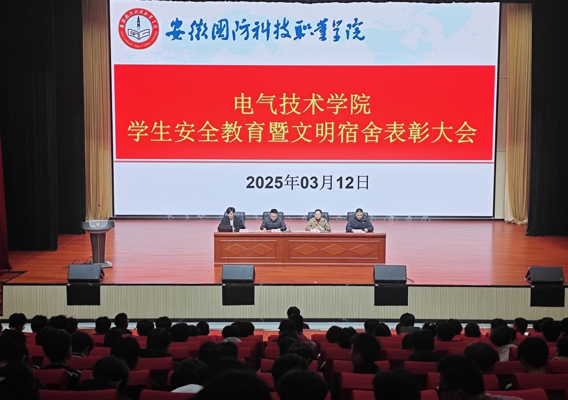本网讯(电气技术学院 杨莹光)为贯彻落实上级和学校近期安全工作部署,进一步提升学生安全意识,推进学生社区文明宿舍创建工作,电气技术学院于3月12日晚上举办了学生安全教育暨文明宿舍表彰大会。学院党总支副书记张丽、全体在校生辅导员,团总支学生会学生干部、班级学生干部和全体宿舍长参加了此次会议,会议由团总支书记陈俊主持。
