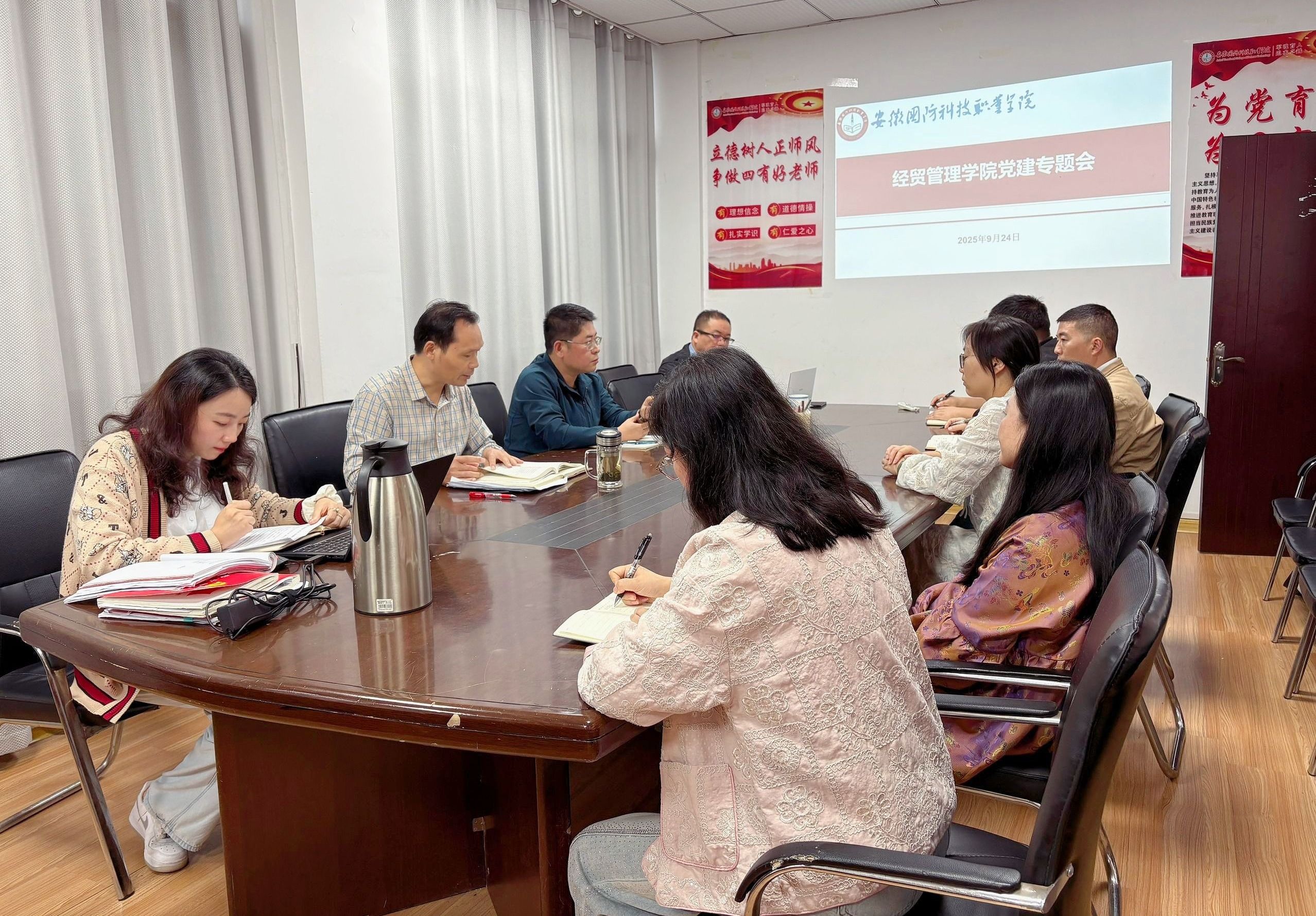 最后,刘峰作总结讲话,对与会同志及全体党务工作者提出明确要求。他强调,一要不断提高政治站位,强化大局意识,自觉将党建工作置于学院事业发展全局中谋划推进;二要持续加强作风建设,力戒形式主义,以严实作风抓好各项整改任务的落实,不断提升学院党建工作的科学化、规范化水平,以高质量党建引领学院各项事业高质量发展。