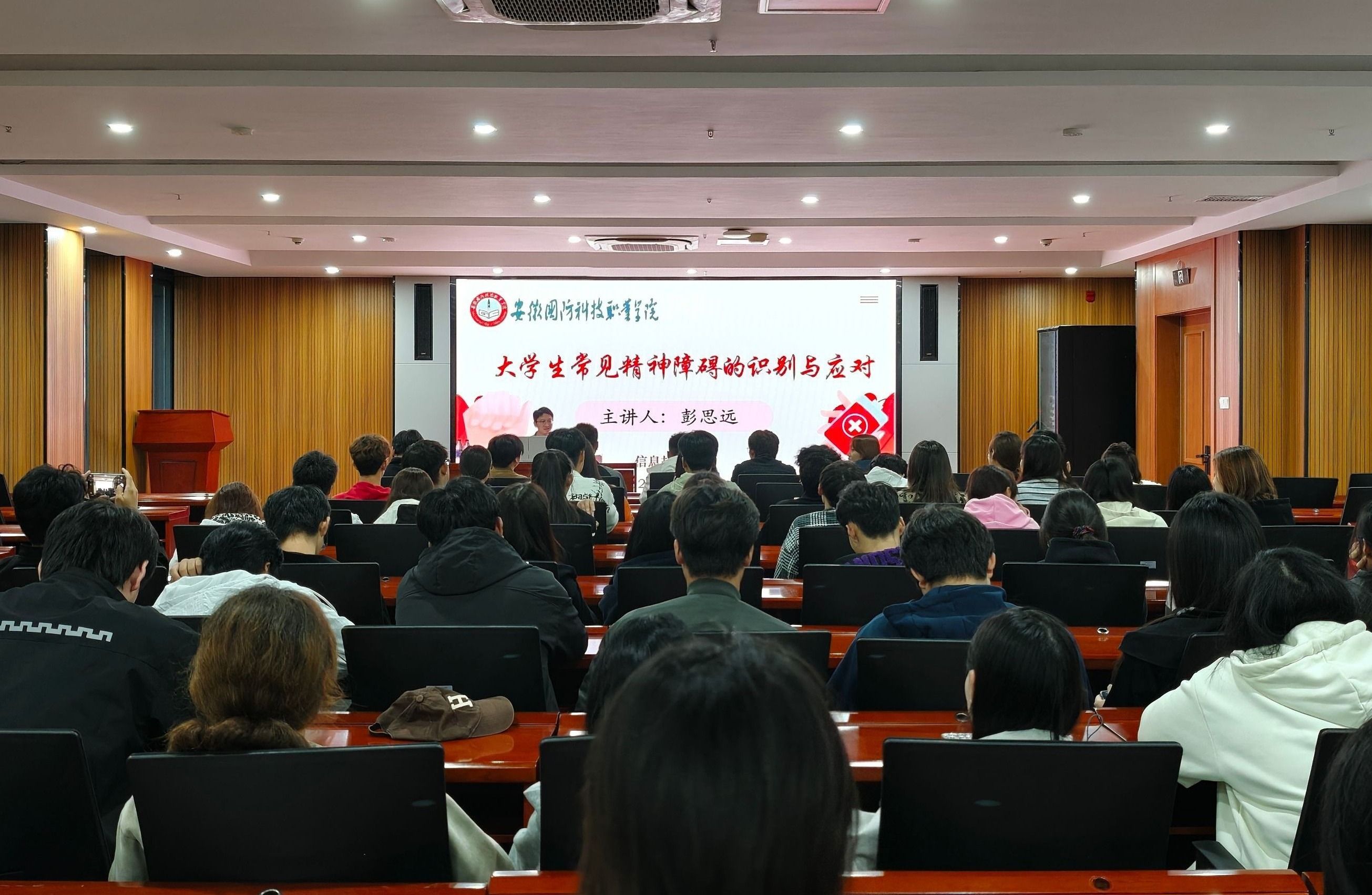 本次科普讲座以《大学生常见精神障碍的识别与应对》为主题,由学院心理辅导员彭思远主讲。本次讲座紧扣主题,首先向同学们介绍世界精神卫生日的由来和当前精神疾病的发生和治疗现状,并结合近年大学生心理健康调研数据,深入剖析当前大学生心理健康现状。随后,讲座就“常见精神障碍及其特征”、“大学生自杀倾向与危机应对”、“学生干部如何发挥骨干作用”等方面向同学们详细展开讲解。帮助同学们正确认识心理问题与精神障碍,学会识别心理危机并积极参与心理健康工作,共同构建和谐校园。