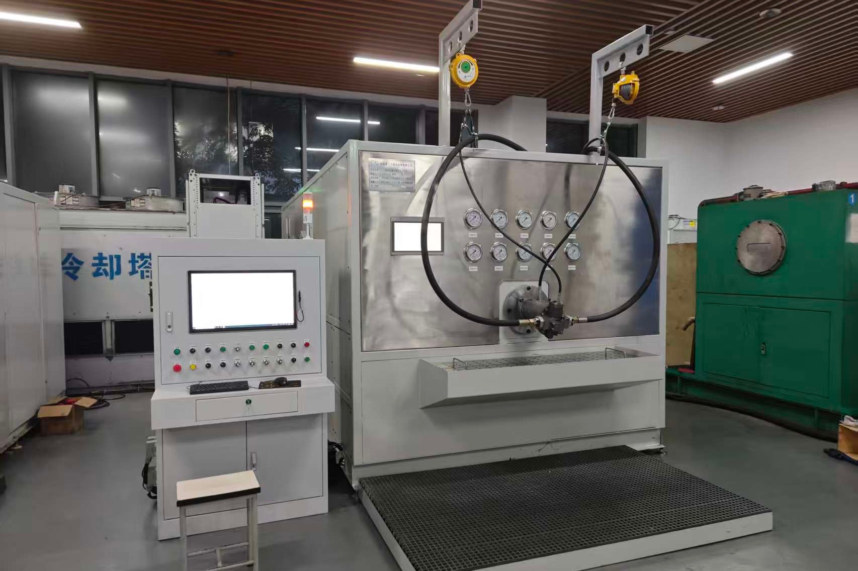 本网讯(电气技术学院 张超)10月30日,由beat365在线唯一官网高端液压元件测试装备系统协同创新中心(beat365在线唯一官网-安徽星之力液压智能有限公司)研制的“300kW轴向变量泵马达试验台”在江苏靖江完成验收交付并使用。