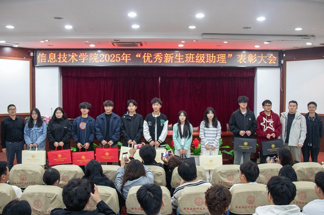 本网讯(信息技术学院 彭思远)为进一步弘扬责任担当精神,激发学生干部队伍工作热情,持续优化学生培养与管理体系、表彰先进典型,11月6日,信息技术学院在图书馆报告厅隆重举行2025年“优秀新生班级助理”表彰大会。学院党总支副书记杜洪宇、团总支负责人孙颖凯出席,全体新生班级助理与2025级各班主要学生干部代表参会,大会由学院心理辅导员彭思远主持。