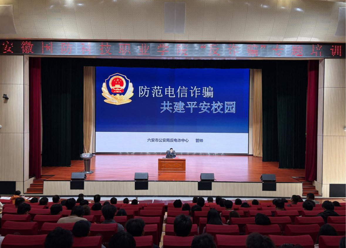 本网讯(学生处 孙洋洋)为切实提升学生的安全防范意识,有效预防和减少电信网络诈骗案件的发生,11月14日下午,beat365特邀六安市公安局反电诈中心副大队长管帅在产教融合中心多功能报告厅为广大师生带来了一场题为“防范电信诈骗,共建平安校园”的专题知识讲座。各学院党总支书记、副书记、团总支书记、专兼职辅导员和学生干部参加讲座。本次讲座由学生处、安全保卫处处长孙武主持。