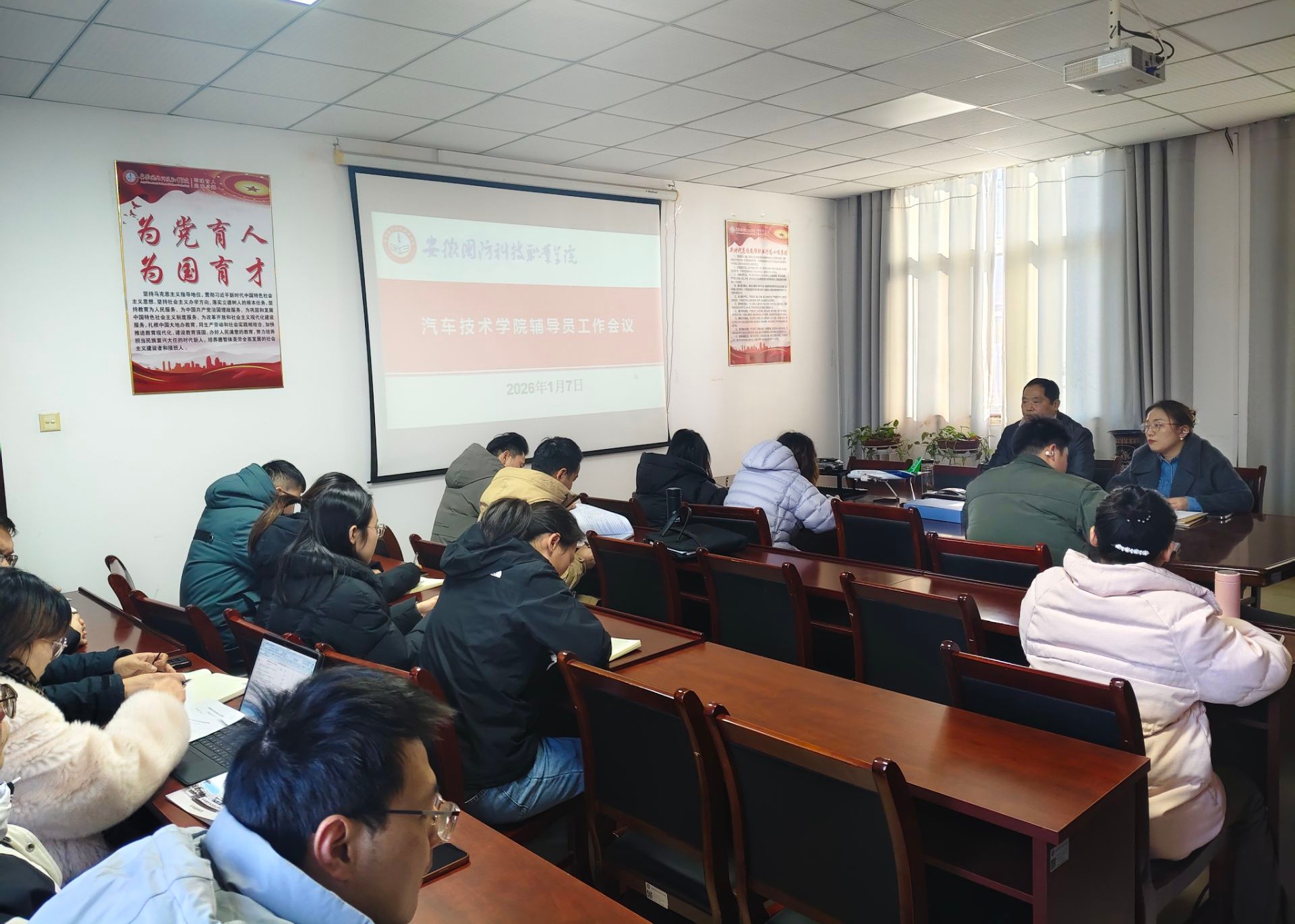 本网讯(汽车技术学院 徐婷婷)为扎实推进期末各项学生工作有序开展,切实强化辅导员育人职责,保障学生平稳度过期末阶段。1月7日,汽车技术学院在知行楼416室召开期末辅导工作例会,会议由学院党总支副书记陈梦雅主持会议,全体辅导员参加会议。