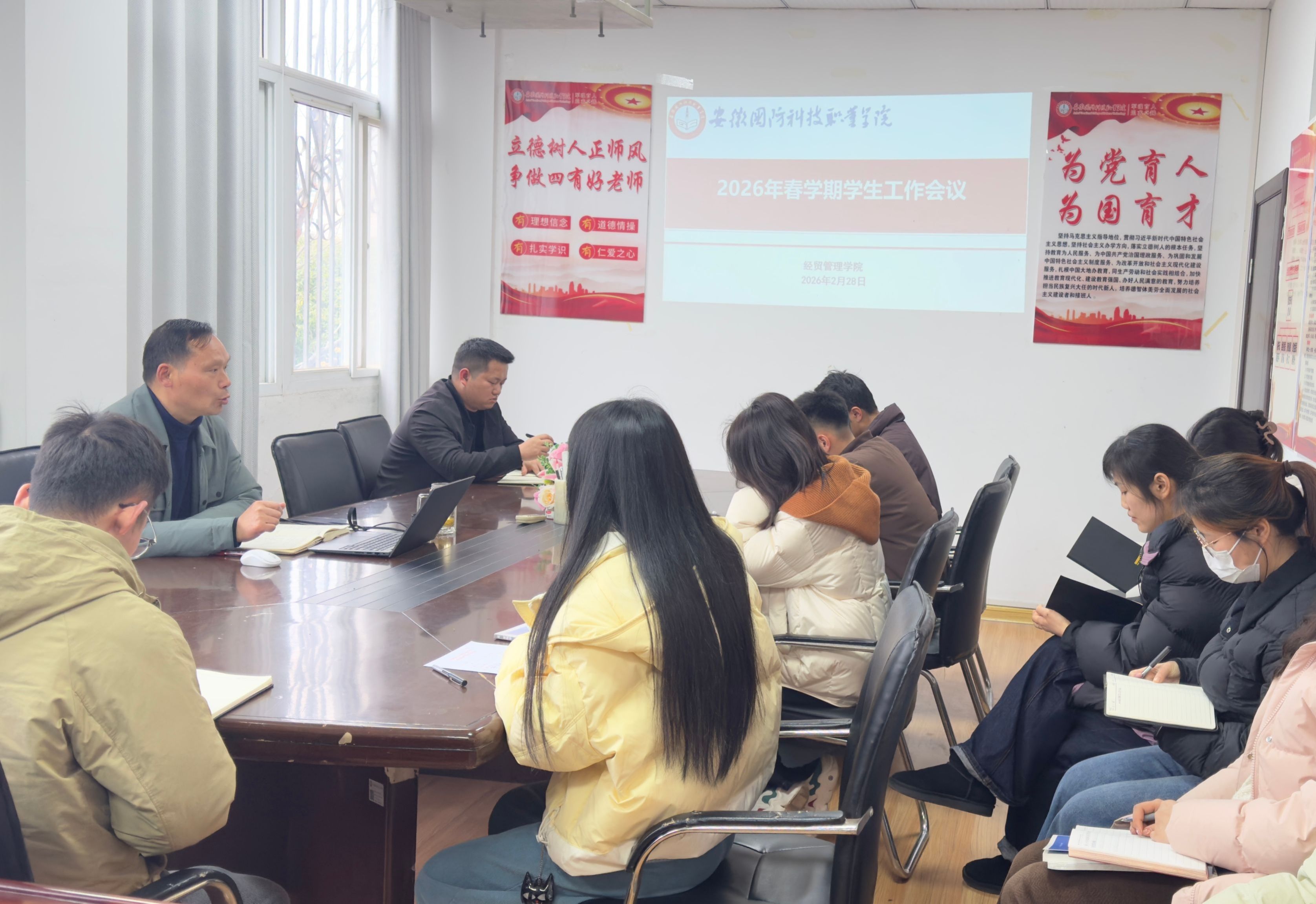 本网讯(经贸管理学院 刘星怡)为落实春学期学校学生、安全工作部署,2月28日下午,经贸管理学院召开2026年春季学期期初专题会议,对新学期学生、安全工作进行全面部署,会议由院党总支书记刘峰主持,全体辅导员参会。