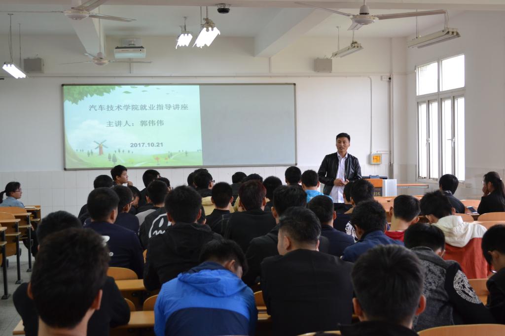 为进一步推动汽车技术学院学生就业指导工作,帮助学生适应就业形势、熟悉就业政策、转变就业观念、增强择业意识,10月21日下午3:00,15级各班学生代表参加了在2教207举行的就业指导讲座。此次讲座由伯乐汽车联盟招聘部经理郭伟伟主讲。
