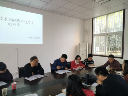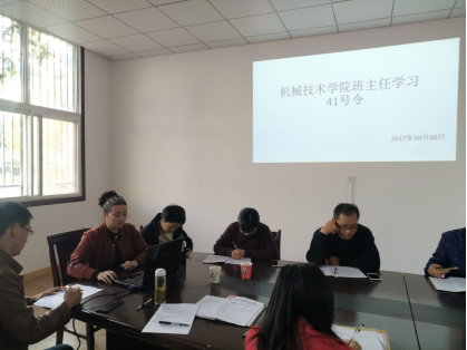 本网讯(机械技术学院 项华)为贯彻落实教育部《<普通高等学校学生管理规定>(教育部令第41号)beat365在线唯一官网实施办法》,10月30日下午,机械技术学院在行政楼院会议室召开班主任学习会议。会议由机械技术学院党总副支书记陈思主持,党总支书记张宗江、团总支书记袁帅和辅导员、班主任参加了会议。