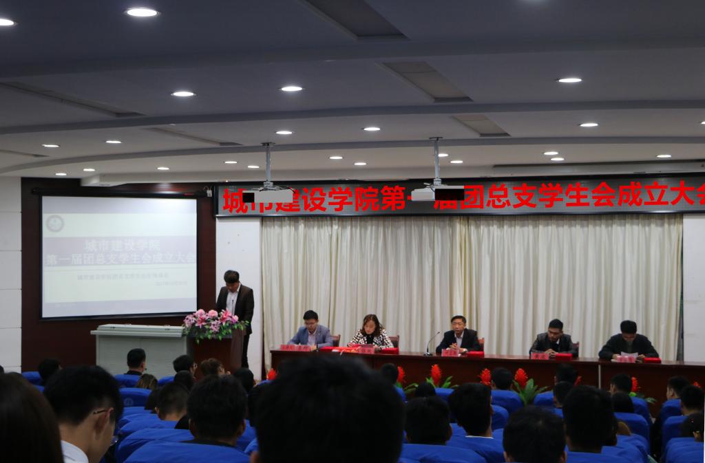 本网讯(城市建设学院 张凤)2017年10月30日,城市建设学院第一届团总支学生会成立大会在图书馆报告厅隆重召开。城市建设学院党总支副书记叶启衡、办公室主任黄波、团总支书记张凤、辅导员袁野、罗丞筠以及团总支学生会全体成员和院属各班级全体学生干部参加了此次会议,会议由罗丞筠主持。