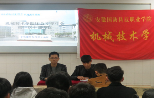 本网讯(机械技术学院 袁帅)2017年11月15日晚6:20,机械技术学院团总支学生会在二教108召开第一次全体干部会议。团总支书记袁帅、学生会主席郭广涛和全体副部级以上学生干部出席了本次会议。