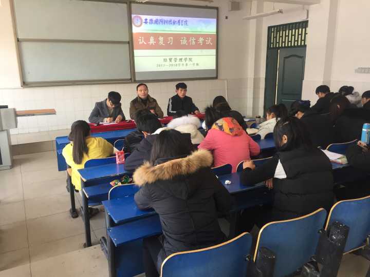 本网讯 为进一步加强学风建设,扎实做好期末复习迎考工作,根据学风建设活动月安排,1月12日中午,经贸管理学院在2教105教室召开2017—2018学年第一学期期末诚信迎考动员大会。院党总支副书记刘峰出席会议,团总支、学生会及各班级主要学生干部参加会议,学生会主席高鹏程主持会议。