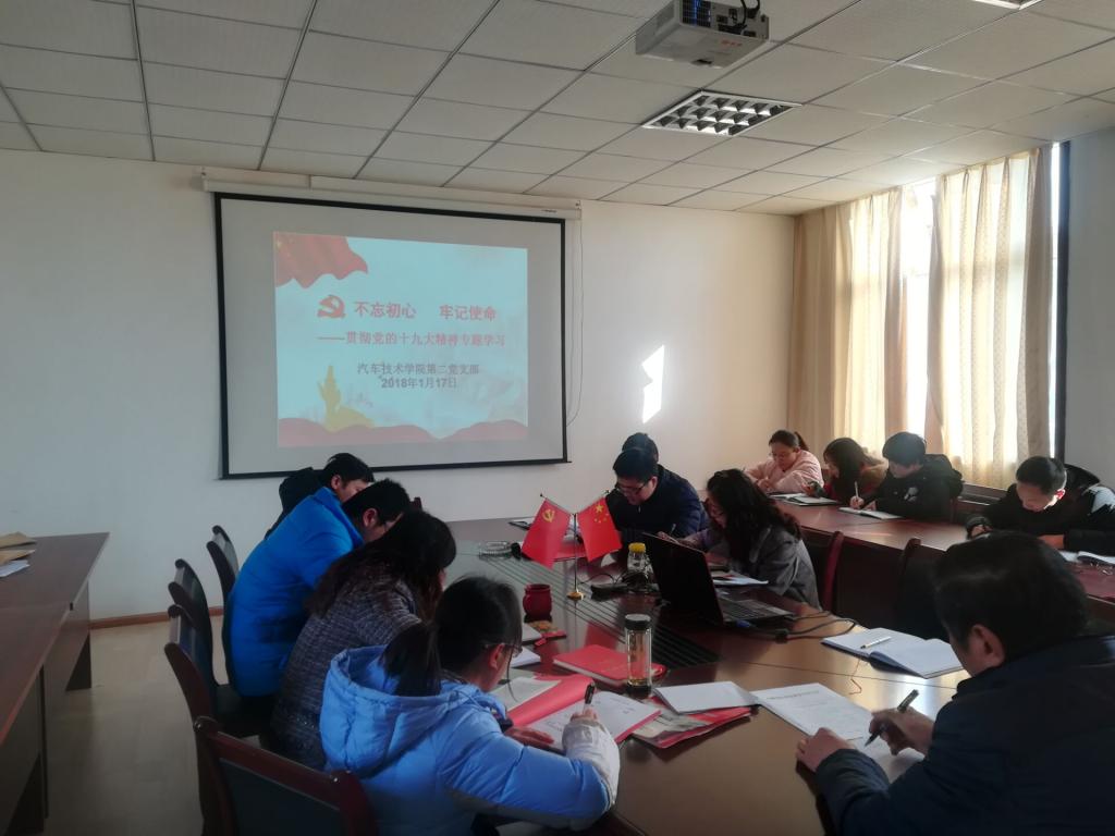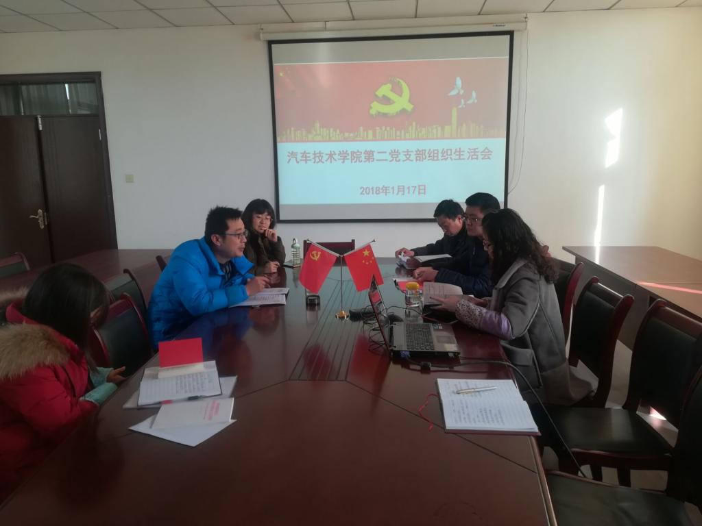 本网讯(汽车技术学院 朱其阳)为深入学习宣传贯彻党的十九大精神,严格落实基层党组织标准化建设的规定,1月17日下午15:00,汽车技术学院在党员活动室开展党员集体学习活动和党支部组织生活会。学院全体教职工党员参加会议。