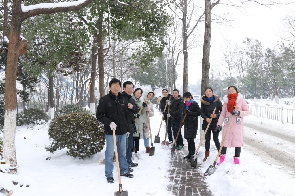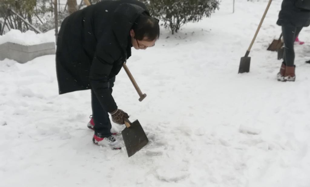 2018新年伊始,魅力六安,瑞雪飞舞,国防内外,银装素裹,天公作美,美不胜收。为了方便群众生产生活,欣赏自然美景,根据学校党委统一部署,直属第二党支部迅速行动起来,1月28日一大早,二支部全体党员以饱满的政治热情和昂扬的劳动斗志,拿起铁锹和扫帚等“武器”,冒着大雪走出校门,来到天河东路进行铲雪扫雪,有的同志奋力铲,有的同志着力扫,特别是遇到覆路坚冰,先是自上而下纵向斩,再是俯身抽底横向铲,锹把干断了,锹口斩卷了,手套磨烂了……有同志不无感慨,啃硬骨头是艰难的,但啃下了又是无比快乐的!火热的劳动场面,引无数路人由衷点赞!为国防学院服务社会点赞!为共产党员先锋模范点赞!