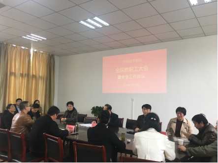 本网讯(机械技术学院 项华)2018年3月14日下午,机械技术学院召开全体教职工大会暨安全工作大会,学院领导以及全体教职工参加了本次会议,大会由学院院长黄祥主持。