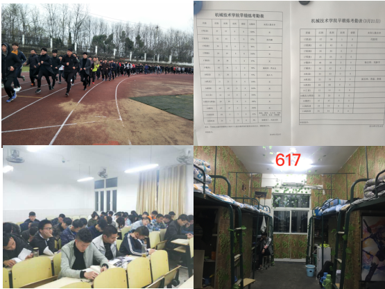 本网讯(机械技术学院 陈思)为贯彻落实学校党政工作要点,深化学院学生工作特色化发展,进一步提升我院学生工作水平和质量,机械技术学院从3月19日开始,着力开展为期一个月的“狠抓三项(晚自习督查、宿舍安全卫生评比、早锻炼集中训练)工作,助力学生管理”活动。