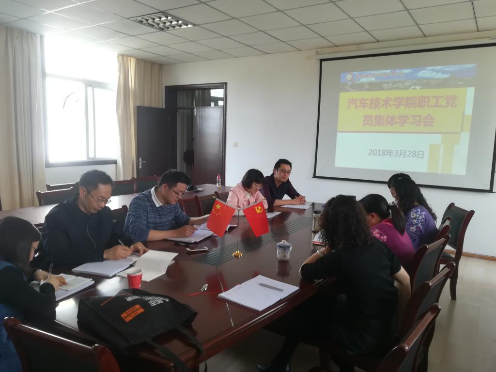 本网讯(汽车技术学院 朱其阳)按照学校党委关于印发学校《2018年度党员、职工学习教育计划的通知》(校党〔2018〕12号)文件精神和要求,3月28日下午15:00,汽车技术学院在行政楼416会议室组织全体教职工党员集中学习了2018年学校党政工作要点。会议由汽车技术学院党总支副书记余桂刚主持。