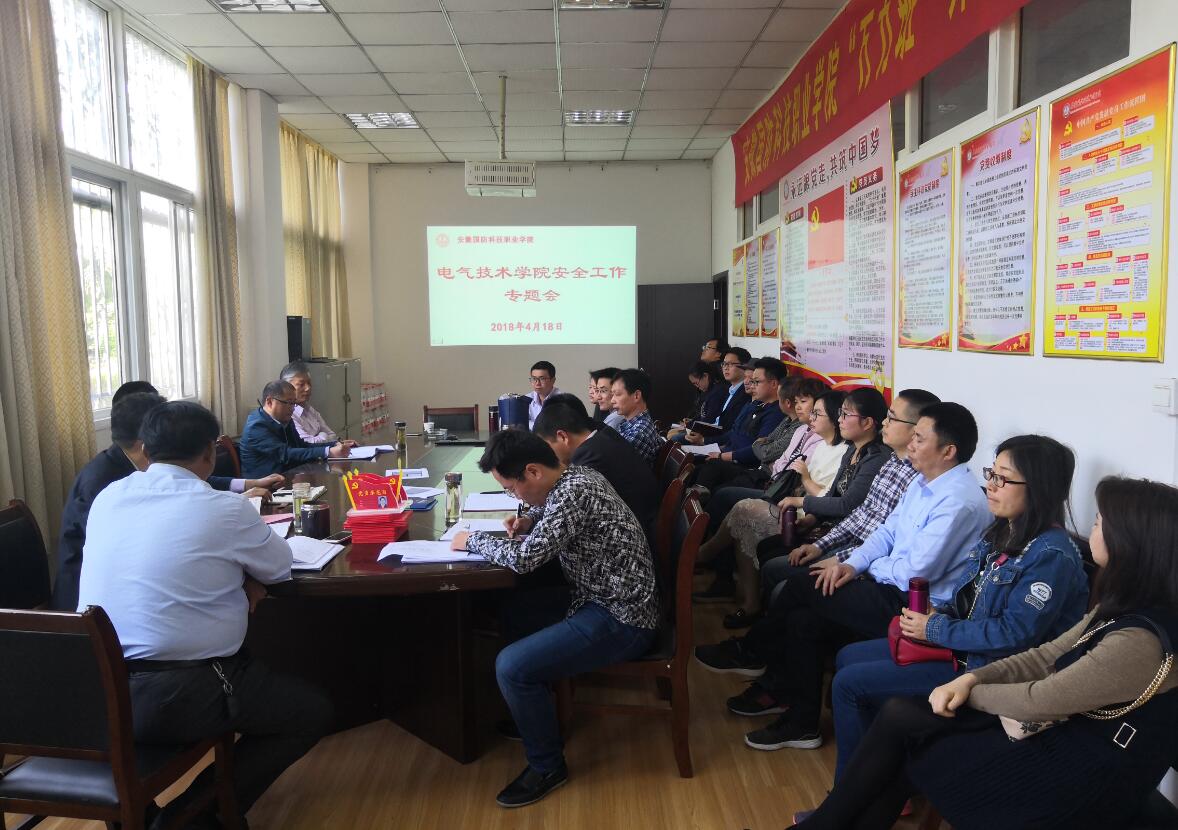 本网讯(电气技术学院 史媛芳)4月18日下午,电气技术学院召开全体教职工大会暨安全工作专题会议,会议由党总支书记王希江主持,全体教职工参加了本次会议。