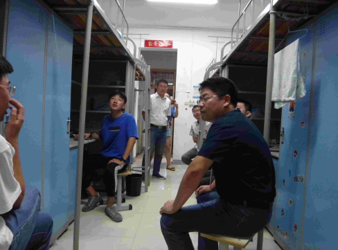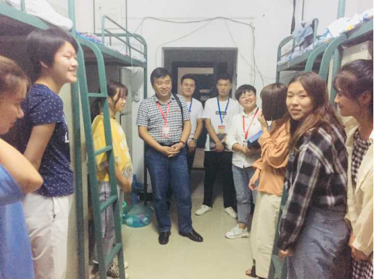 9月8日晚,迎新结束后,党员老师们又走进宿舍,实地了解学生住宿情况,关心慰问学生生活情况。党员老师们先后走访了2栋、3栋、5栋9栋学生宿舍,每到一间宿舍,党员老师们都仔细查看并询问学生的宿舍环境、卫生状况、安全保障、生活配套等情况,并与