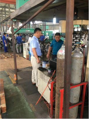 会后,总经理韩克尚带领大家参观了车轮生产车间,并就生产过程中高效高质自动化去除焊渣设备研制存在的关键问题进行了现场分析和研讨,为进一步技术支持和项目研发提供了明确的方向。