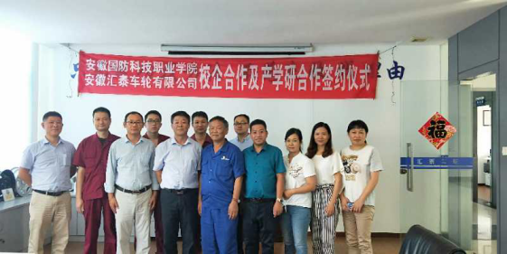 本网讯 2018年9月14日,机械技术学院党总支书记张宗江、副院长郭利和骨干教师崔时军一行3人到安徽汇泰车轮有限公司进行产学研合作洽谈。汇泰车轮总经理韩克尚、总顾问张道建、副总经理江成林、技术部经理张斌等6位人员参加会议。