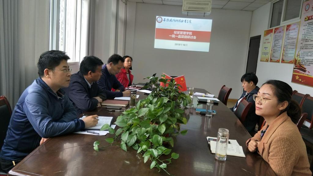 本网讯(经贸管理学院 付玉梅)为全面推进经贸管理学院“一院一品”建设活动,10月15日,经贸管理学院在行政楼202会议室召开专题研讨会,学院党政领导班子成员、全体辅导员出席会议。