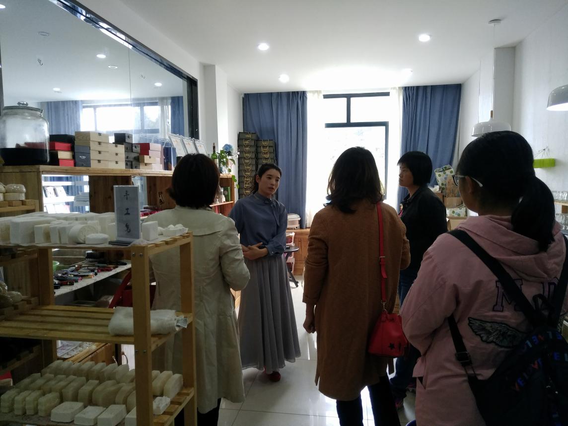 在安徽省劳模、六安市伊甸园油茶种植专业合作社总经理李必琼陪同下,一行人等首先前往独山镇茶谷驿站参观手工制作工坊,详细介绍了各式茶油手工皂、唇膏、口红等产品的研发、生产过程;随后驱车前往三万亩种植基地实地考察,公司副总黄锦清向大家介绍了油茶种植、管护、采摘、加工及深加工产品。在校企座谈中,双方就 “校企合作”产学研基地的建设进行深入交流与探讨,加速推进茶油精加工手工产品进校园项目的落实。