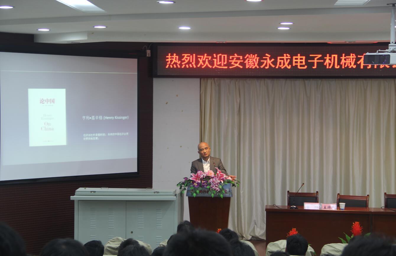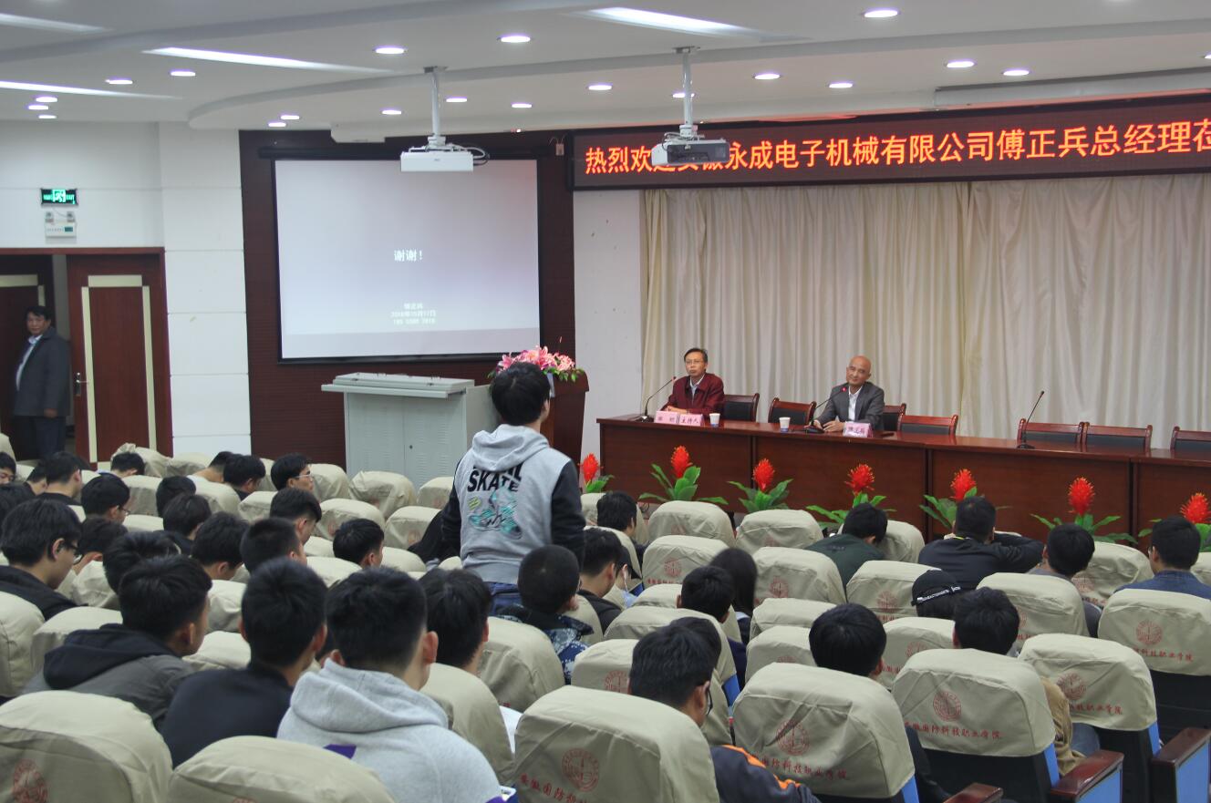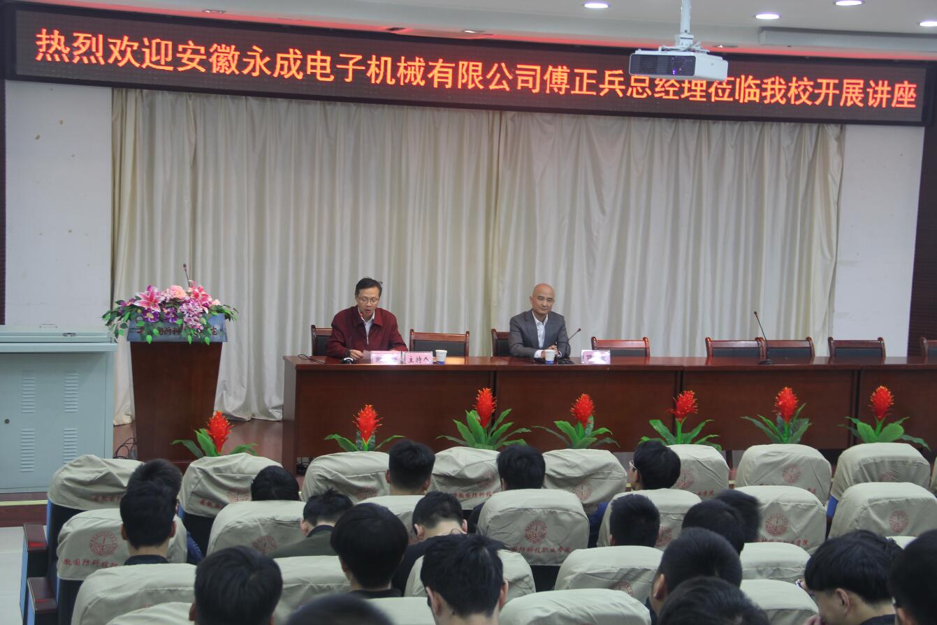 本网讯(电气技术学院 史媛芳)10月17日晚,电气技术学院邀请安徽永成电子机械有技术有限公司总经理傅正兵来校,为学生开展了一场“创新精神与创业能力培养”的主题讲座,会议由电气学院院长李翔主持,党总支书记王希江、副院长侯国栋及电气技术学院16级和17级自动化专业群和船舶电子电气技术专业学生参加了讲座。