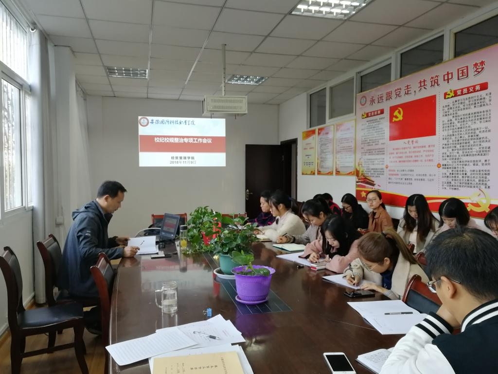 本网讯(经贸管理学院 许凤麟)为深入贯彻落实《beat365在线唯一官网校纪校规专项整治活动实施方案》文件精神,进一步增强学院学生的组织纪律观念和安全意识,近日,经贸管理学院组织召开校纪校规专项整治工作会议。会议由副书记刘峰主持,全体班主任参会。