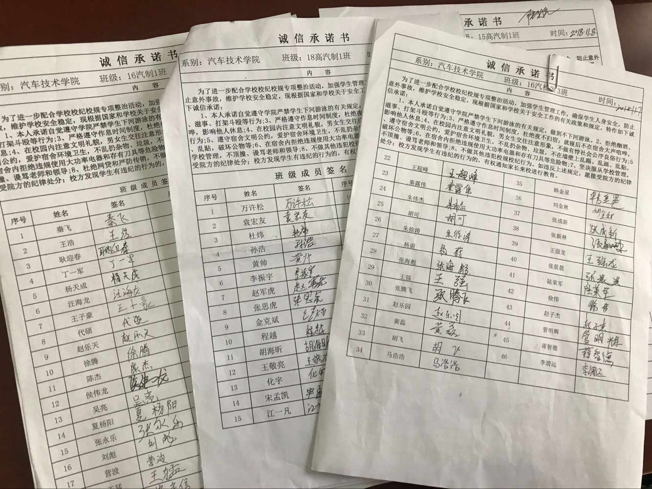 11月6日至11月15日,学院所属各班级严格按照要求,在规定时间和教室分别召开了主题班会和诚信教育签名活动。各班主任根据校纪校规专项整治活动实施方案的规定,就整治学生不良行为、寝室卫生管理、校园网贷防范以及2016级顶岗实习班级学生文明离校等内容进行了细致的讲解。