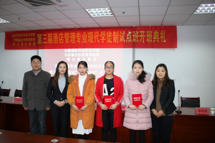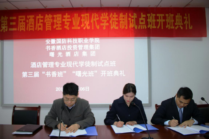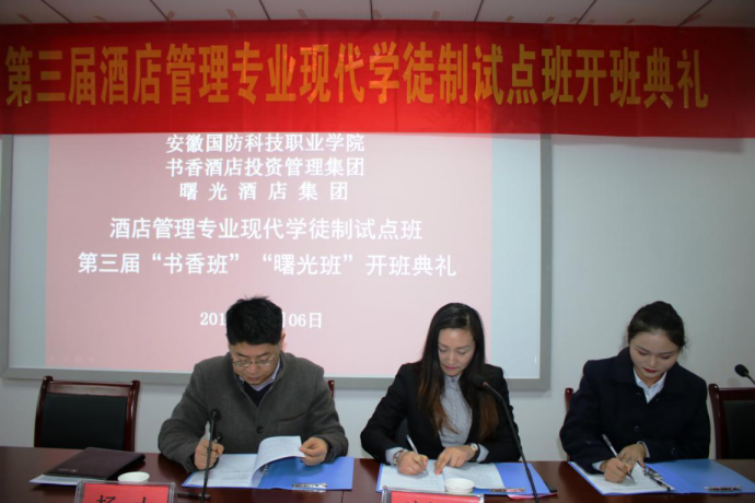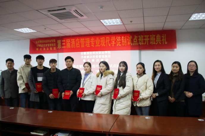 至此,第三届“书香试点班”学生和第一届“曙光试点班”学生正式拥有了在校学生和酒店员工的双重身份。