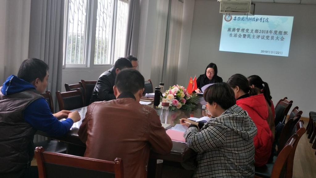本网讯(经贸管理学院 许凤麟)按照《关于召开2018年度基层党组织组织生活会和开展民主评议党员的通知》要求,3月22日,经贸管理学院旅游管理党支部召开了2018年度组织生活会暨民主评议党员大会,全体党员参会。会议由支部书记司首婧主持。