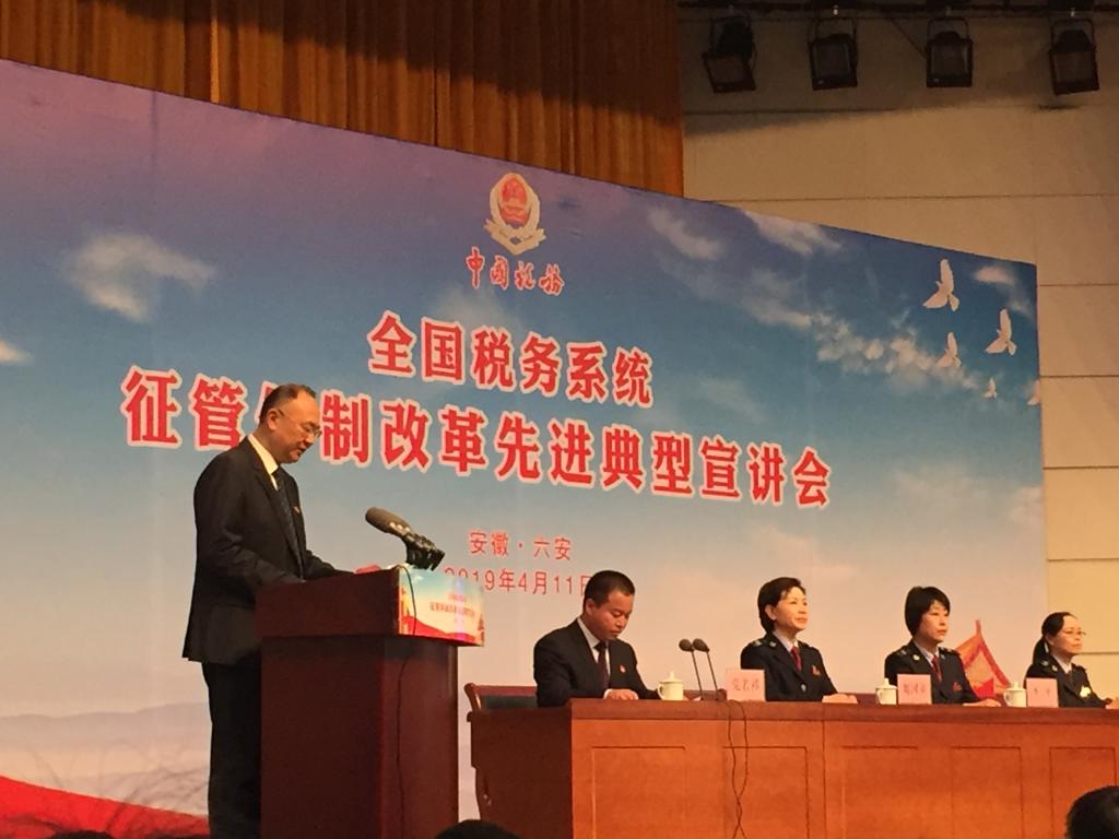本网讯 4月11日上午,国税地税征管体制改革先进典型六安宣讲会在六安市行政中心举行,来自宁夏、湖北、新疆等省区市税务部门的六位先进典型人物讲述了他们投身改革、奉献改革的感人事迹。在学校的安排下,财务处李大武处长带领财务处全体同志及国资办、学生处等10位同志参会,接受了深刻的税改教育。