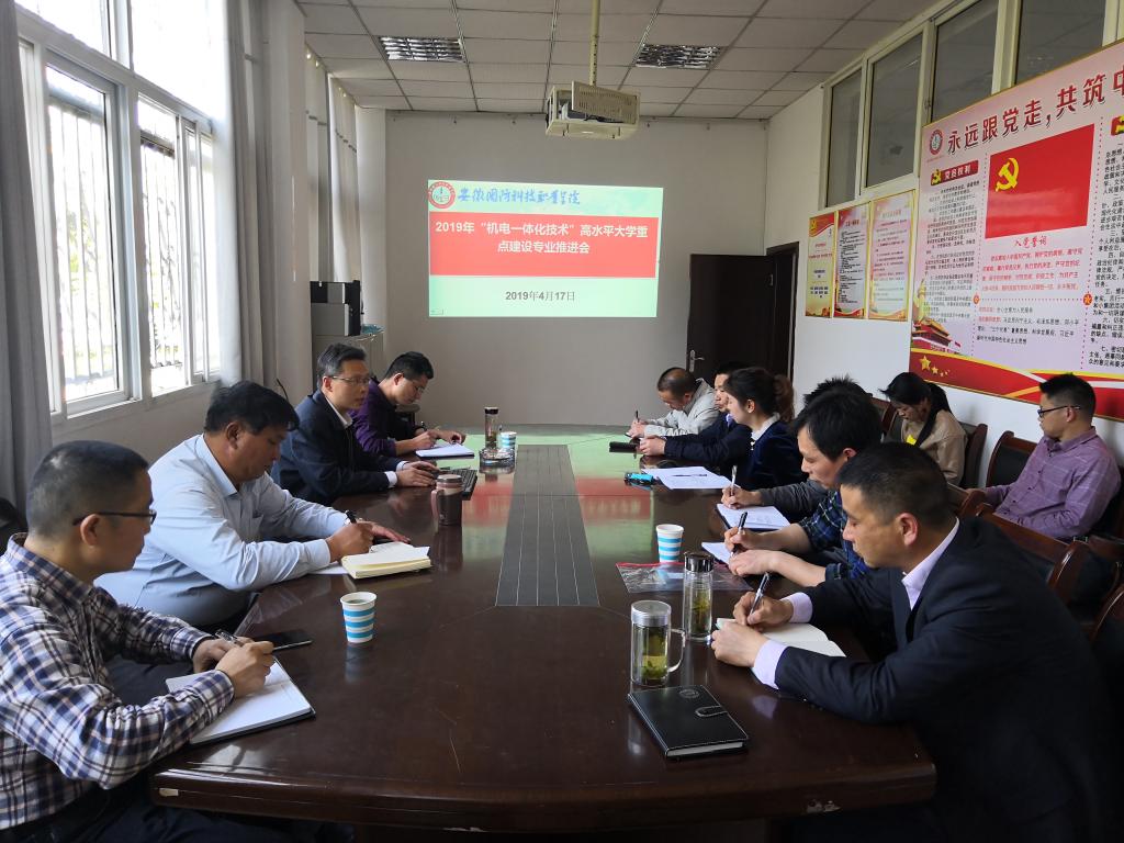 本网讯(电气技术学院 史媛芳)为扎实推进beat365技能型高水平大学建设和特色高水平高职专业建设,根据《关于推进beat365技能型高水平大学和特色高水平高职专业建设工作的通知》(校高建办〔2019〕1号)文件精神,电气技术学院于4月17日下午组织开展了2019年“机电一体化”高水平大学重点专业建设推进会,会议由院长李翔主持,全体副高以上职称、专业带头人(负责人)、骨干教师参加了会议。