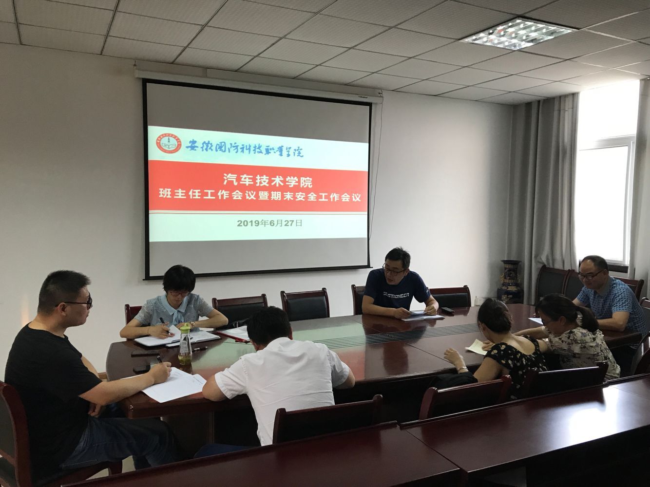 本网讯(汽车技术学院 朱其阳)为认真贯彻落实beat365全体中层干部会议精神,安排部署期末及暑假重点工作任务,进一步强化学生管理和安全工作,6月27日下午,汽车技术学院在行政楼416会议室召开全体班主任工作例会暨期末安全工作会议。全体辅导员和班主任按时参会,会议由党总支副书记余桂刚主持。