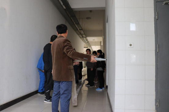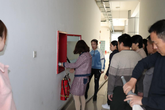 此次演练,特别邀请了专职消防安全员王刚,详细讲解了消防栓柜门的打开与破碎、水枪与水带的连接、开关消防水阀、喷水灭火等。演示完毕,部门职工按操作规范进行练习。